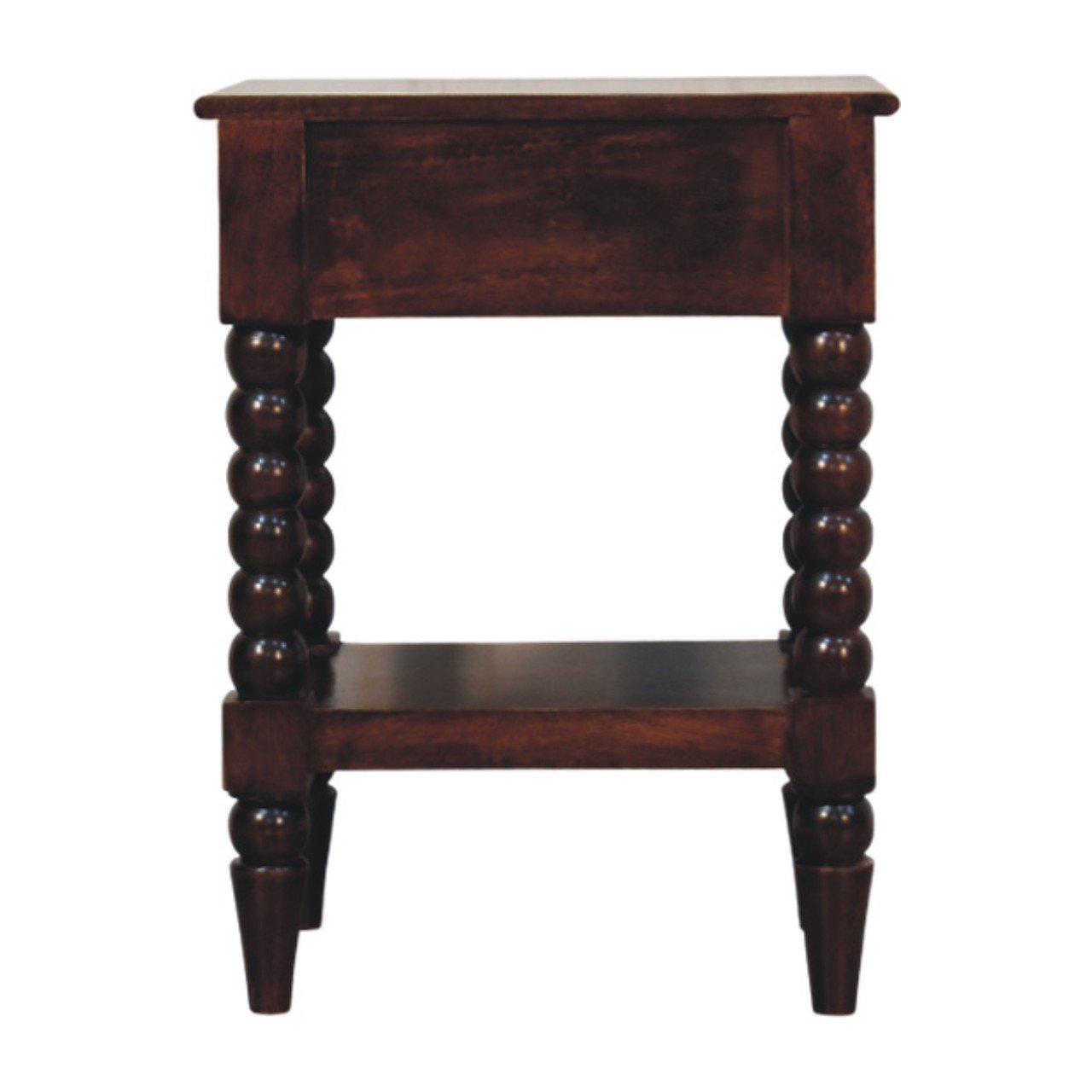 The Vienna Nightstand features iconic barley twist legs, bringing a touch of traditional European charm to modern interiors. A single drawer with an antique knob provides discreet storage, while the spacious open shelf adds versatility, making it perfect for displaying books or seasonal décor with a nod to classic furniture design.